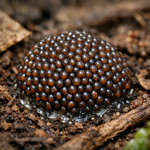 • Choix du site de ponte : Une fois détachée de son hôte, la femelle privilégie un lieu protégé des éléments, comme la litière de feuilles, les hautes herbes ou le sous-bois. Elle y dépose ses œufs, agglomérés et maintenus ensemble par une substance collante qui prévient également leur dessèchement.